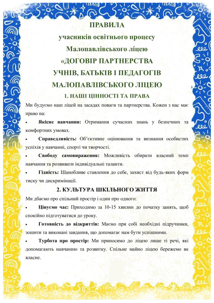 Вітаємо у розділі виховної діяльності Малопавлівського ліцею!